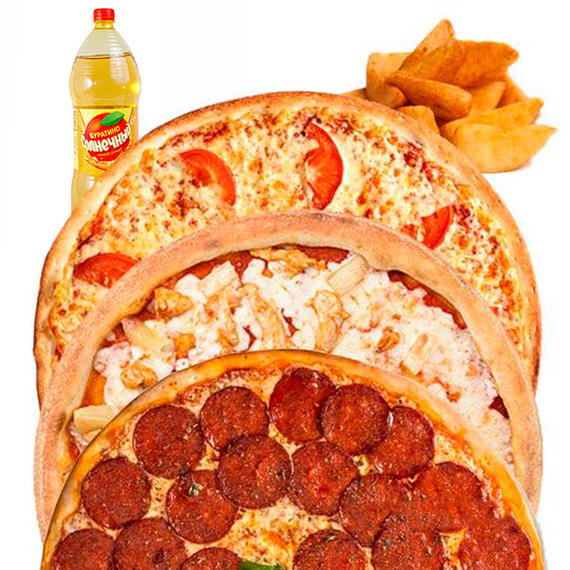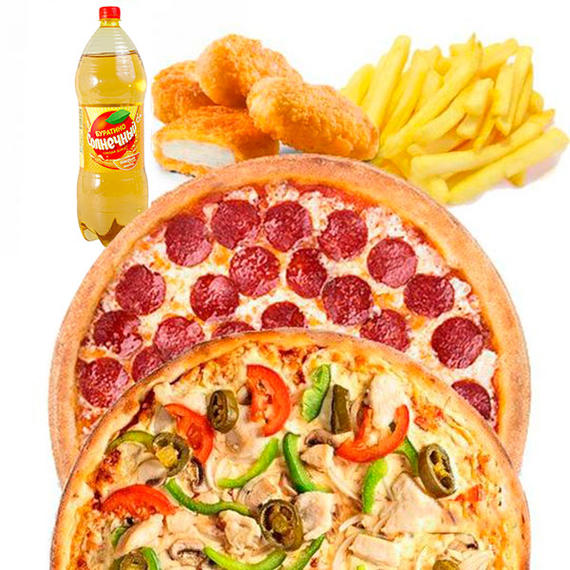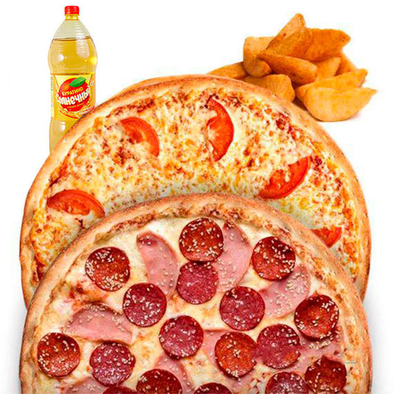 Маргарита (32 см), Гавайская (32 см), Пепперони (32 см), Картофельные дольки, Напиток на выбор