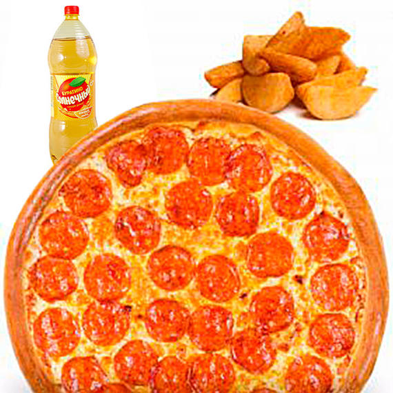 Отличный вариант для дружных посиделок. Большая пепперони, картофель айдахо, напиток на выбор