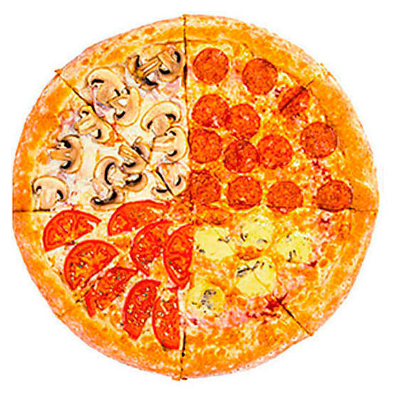 Томатный соус, шампиньоны, пепперони, томаты, брынза, сыр моцарелла, орегано