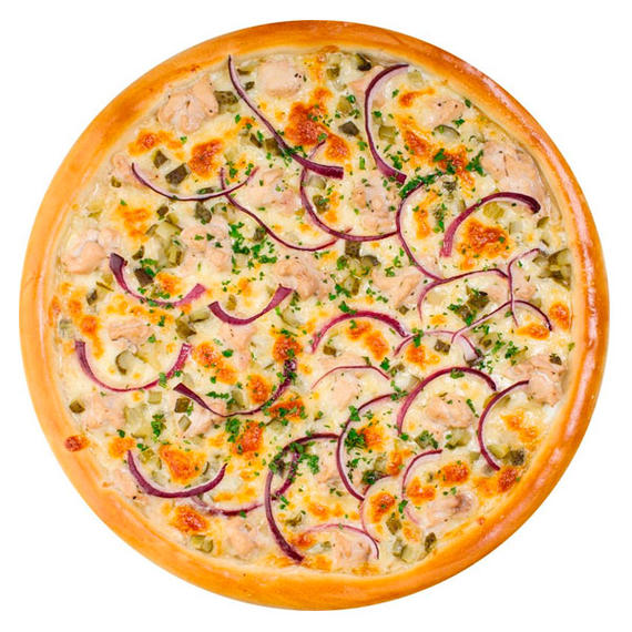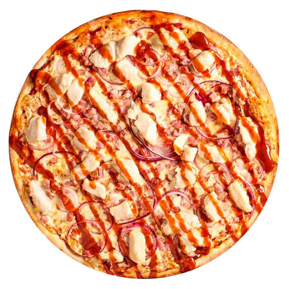 Томатный соус, куриное филе, красный лук, соус барбекю, сыр моцарелла