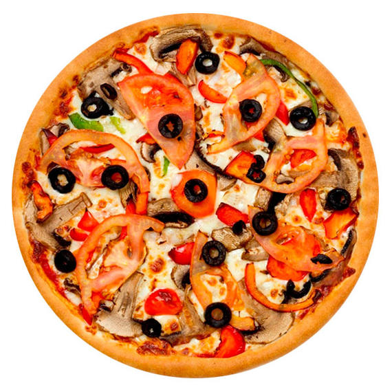 Томатный соус, болгарский перец, маслины, шампиньоны, томаты, сыр моцарелла