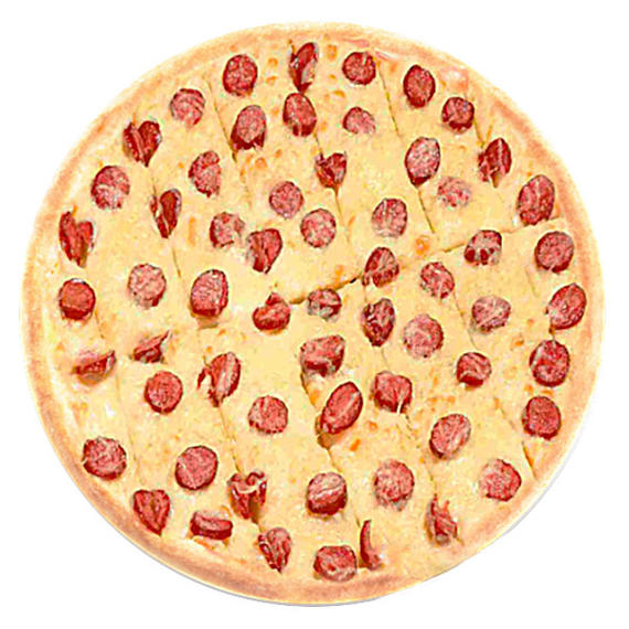 пицца соус, сыр "моцарелла", двойная порция колбасок "пепперони"