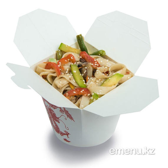Лапша, шампиньоны, цукини, фасоль стручковая, перец болгарский, морковь, лук репчатый, соевый соус