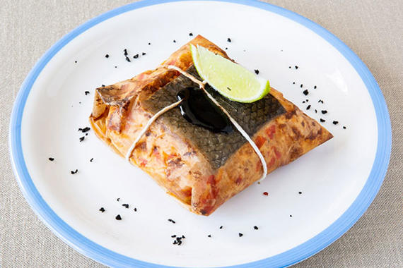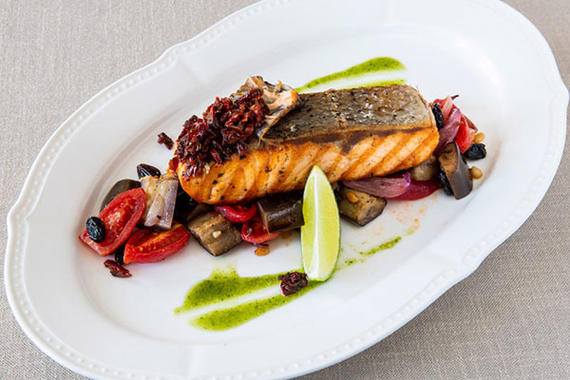 Стейк из семги с овощами