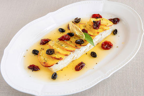 Семга, запеченная с нежным сливочным соусом из коктейльных креветок