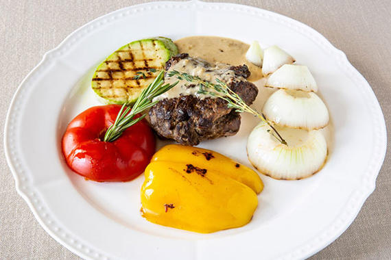 Стейк из говядины с овощами гриль
