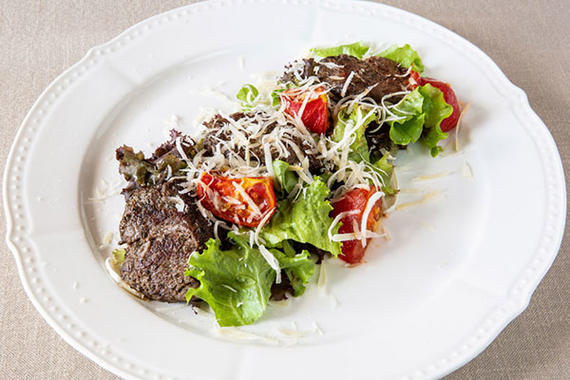 Медальоны из говядины, помидоры, сыр "Пармезан"