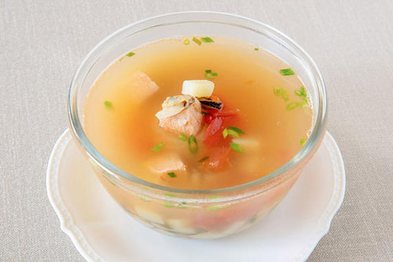 Феттучини, куриная грудка, желудок, сердце, подается с куриным бульоном с добавлением белого вина