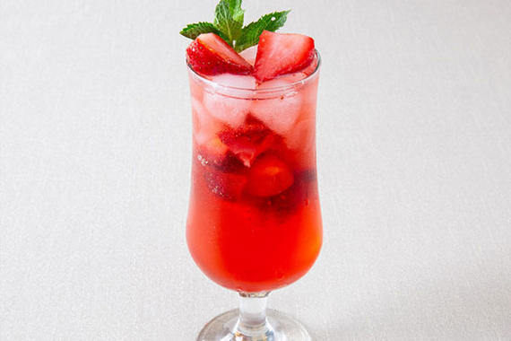 Сироп клубничный, сироп малиновый, сок лимона, содовая