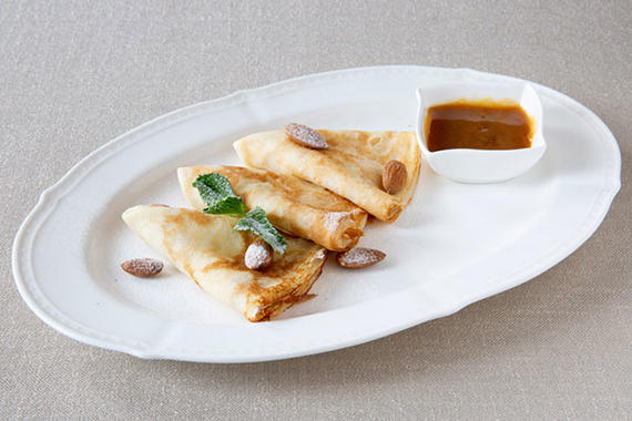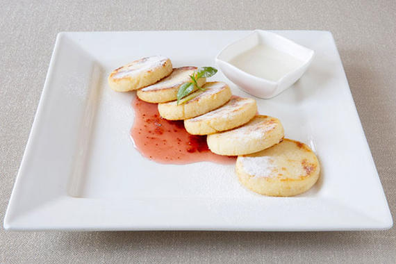 Обжаренные на сливочном масле, подаются на клубничном джеме с ванильным соусом