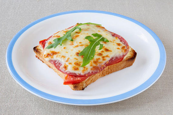 Тостерный хлеб, говяжья ветчина, помидор, сыр моцарелла