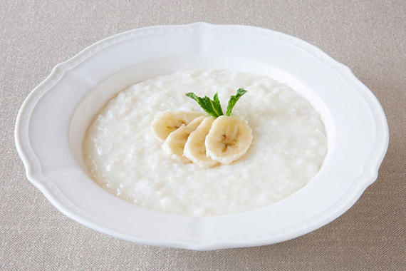 Манка сваренная на молоке с добавлением сливочного масла, подается с морковным дрессингом