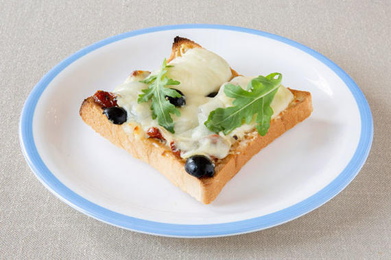 Тостерный хлеб, вяленые томаты, маслины, сыр моцарелла буффало