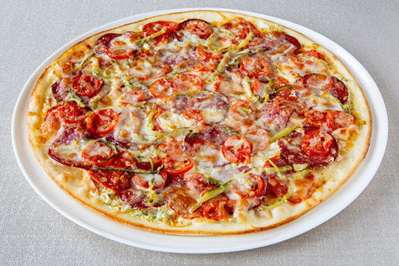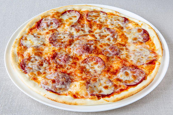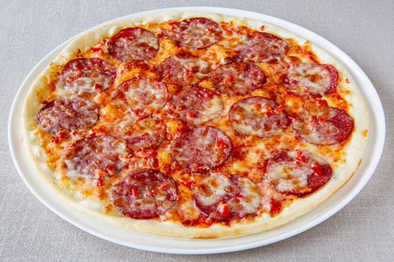 Соус томатный, салями, жгуче-острые перчики пепперони, сыр Моцарелла