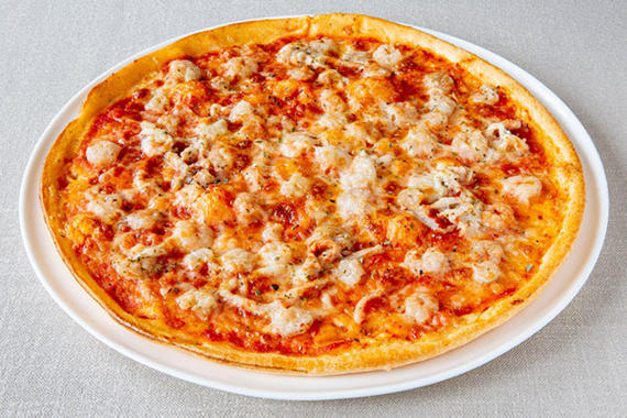 Соус томатный, креветки коктейльные, кальмары, сыр Моцарелла, сыр Пармезан, орегано