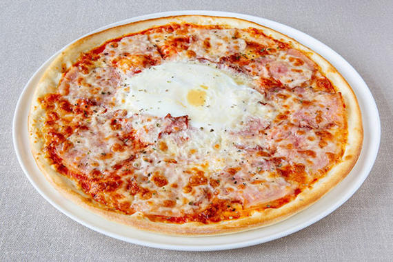 Соус томатный, бекон, яйцо, сыр Моцарелла