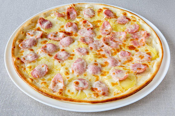 Соус Альфредо, сосиски, картофель, сыр Моцарелла