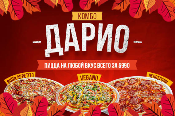 Кухня: Десерты, Комплексные обеды, Пицца, Салаты и закуски, Фаст фуд