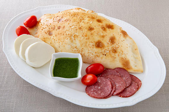 Соус Песто, Салями, черри вяленые, кунжут, сыр Моцарелла
