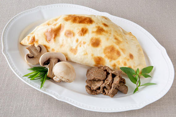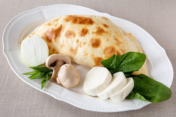 Шпинат, шампиньоны свежие, лук жареный, сыр моцарелла