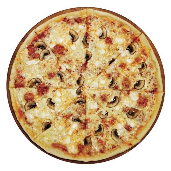 Томатный соус, сыр моцарелла, грибы шампиньоны, сыр фетакса