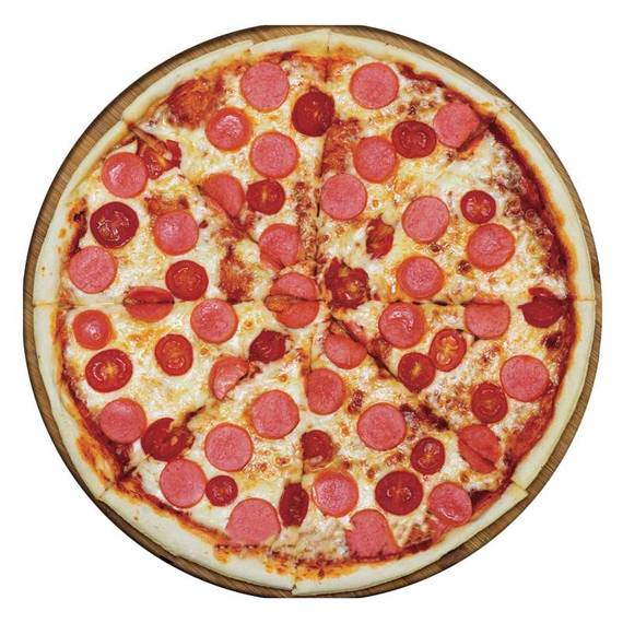Томатный соус, сыр моцарелла, колбаски пепперони.