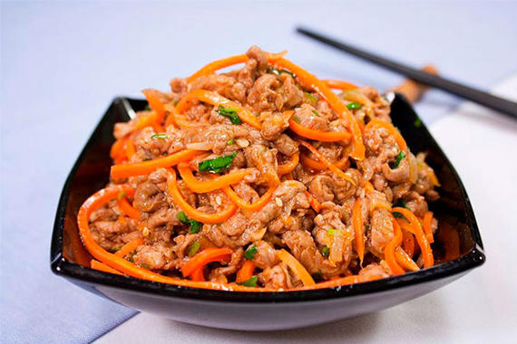 Корейское блюда из диетического мяса судака