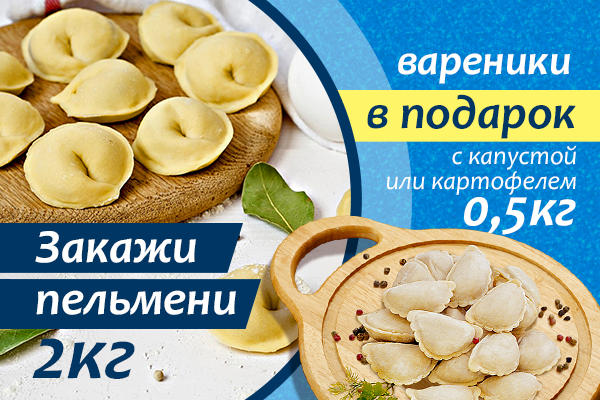 Закажи 2 кг пельменей и получи 0.5 кг вареников с капустой или картофелем в подарок