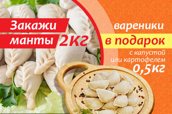 Закажи 2 кг мант и получи 0.5 кг вареников с капустой или картофелем в подарок