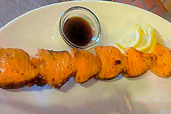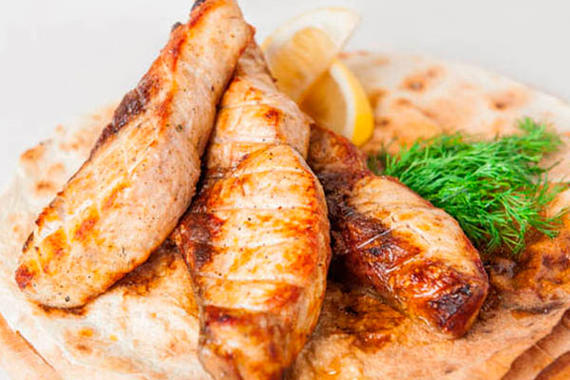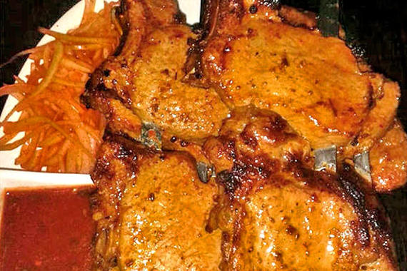 Филе свинины на косточке, лаваш, маринованный лук, соус фирменный