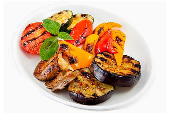 Баклажан кабачок помидор перец болгарский подается с соусом цацики