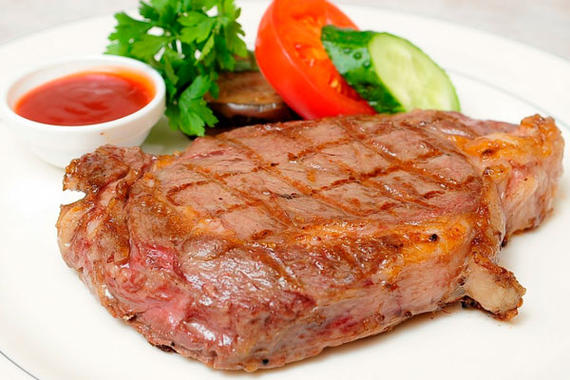 Филе свинины на косточке, лаваш, маринованный лук, соус фирменный
