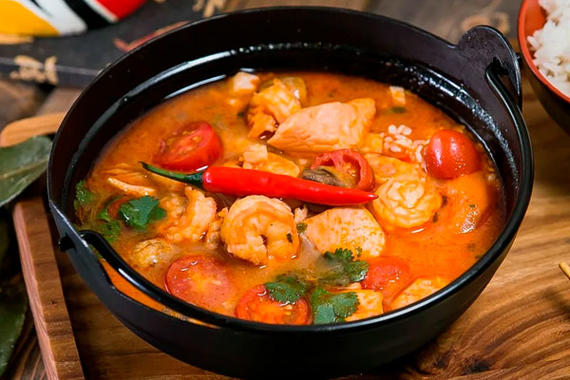 Острый суп с креветками, шампиньонами, кокосовый молоком