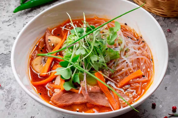Острый суп с говядиной и фунчозой