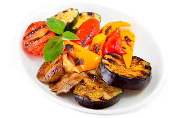 Баклажан, помидор, кабачек, шампиньоны, лук, морковь, перец болгарский