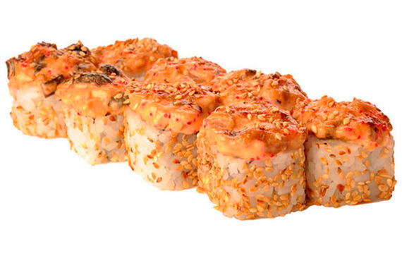Сыр фил-я, угорь, кунжут, спайси соус