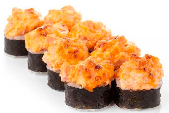 Сыр фил-я, томаго, огурец, тобика, лосось, спайси соус