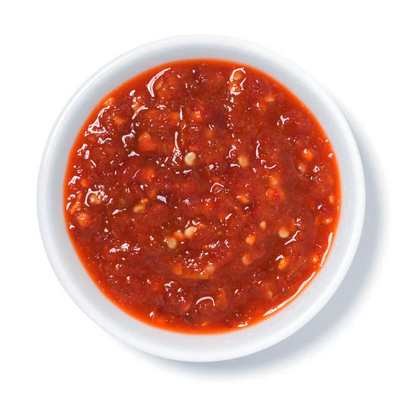 Острый соус с зеленью на основе томатов.