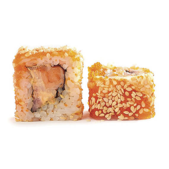 Угорь, кунжут, соус гриль, сыр моцарелла, соус устричный