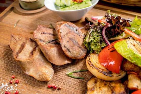 С прожаркой на ваш выбор: Rare, medium Rare, medium, medium Well, Well Done, подается с соусом Вишнёвый конфи