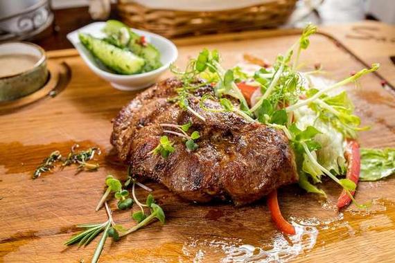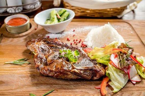 Мясо на кости с прожаркой на Ваш выбор: Rare, medium Rare, medium, medium Well, Well Done, подается с соусом Чивас Ригл