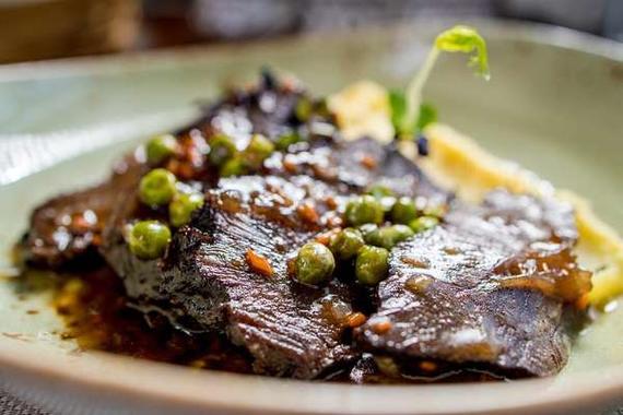 Томленый соус Демиглас, овощная заправка, зелёный горошек
