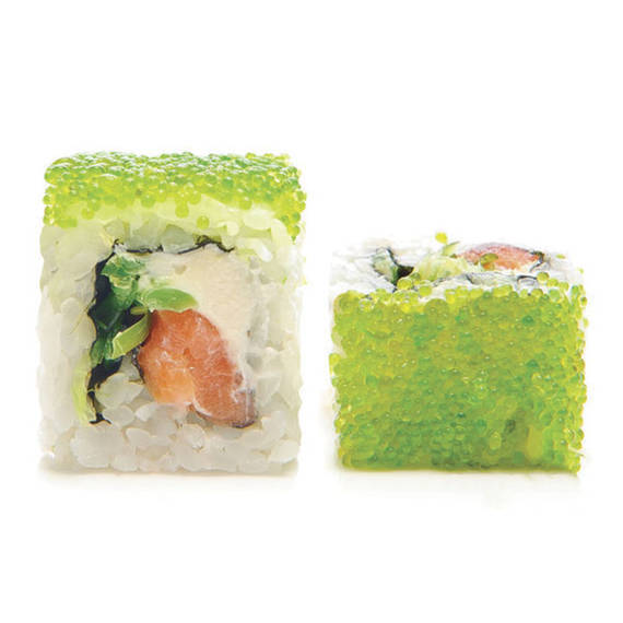 Тобико зеленая, лосось, салат чукка, сыр филадельфия
