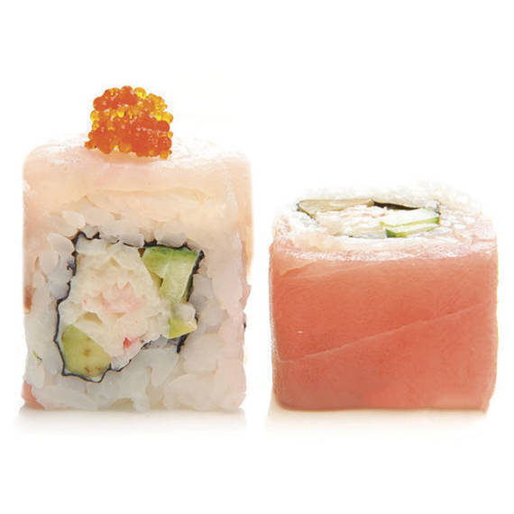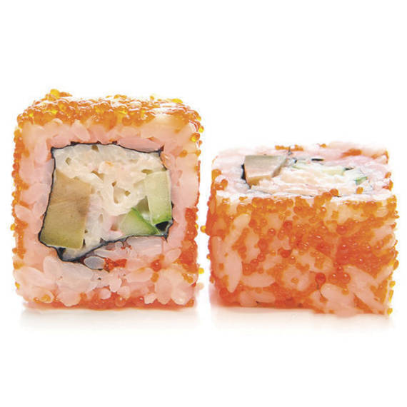Лосось, тунец, окунь, креветка, осьминог, снежный краб, огурец, авокадо, тобико красная