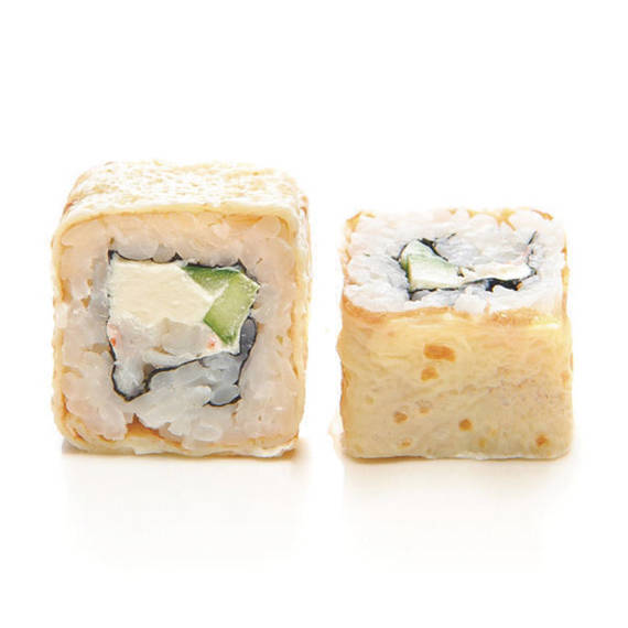 Яичный блинчик, огурец, креветка, сыр филадельфия