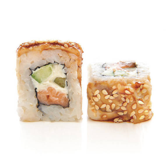 Угорь, лосось, огурец, авокадо, сыр филадельфия