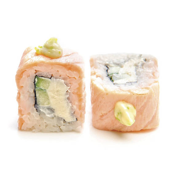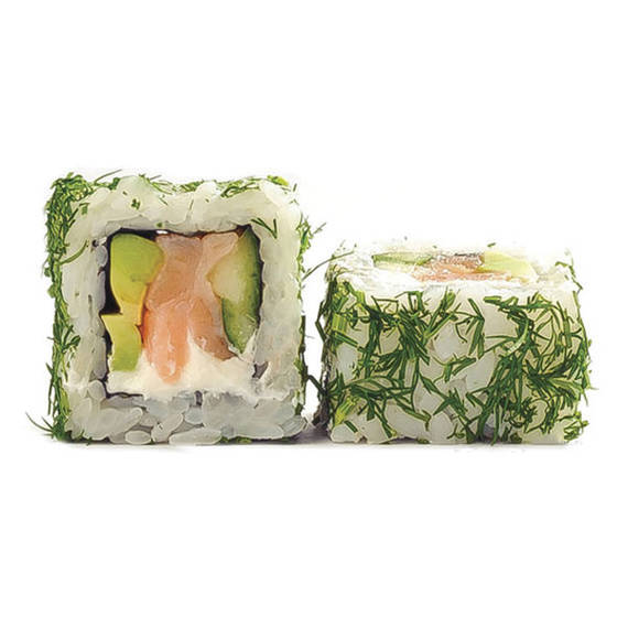 Лосось х/к, крем чиз, авокадо, огурец, укроп