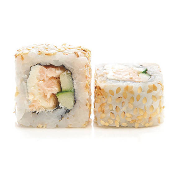 Лосось жареный, огурец, кунжут, сыр филадельфия