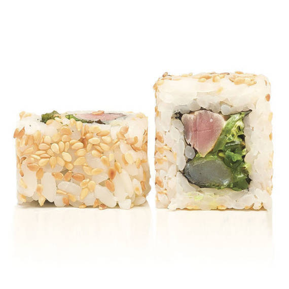 Окунь, тунец, тобико, лосось, кунжут, спайси соус