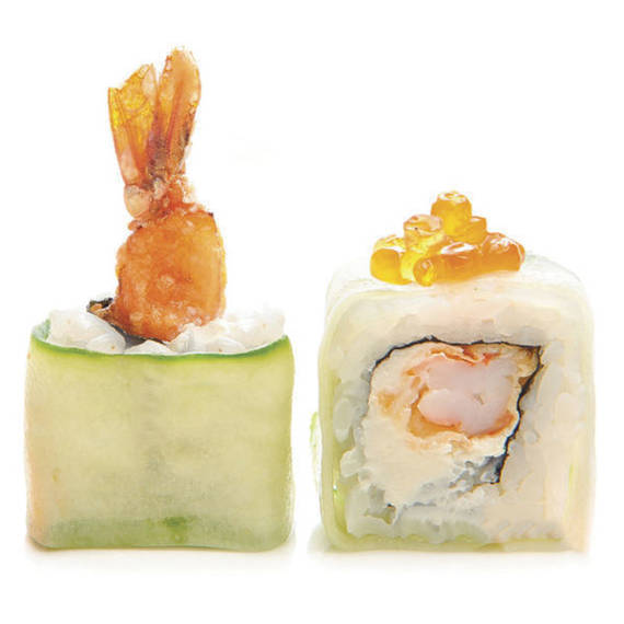 Угорь, икра тобико, дайкон маринованный, лист салата, огурец, майонез